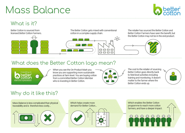 Better Cotton không chỉ dành cho người nông dân, mà bao phủ toàn bộ chuỗi cung ứng dệt may thông qua mô hình Chuỗi hành trình sản phẩm (Chain of Custody), bao gồm: